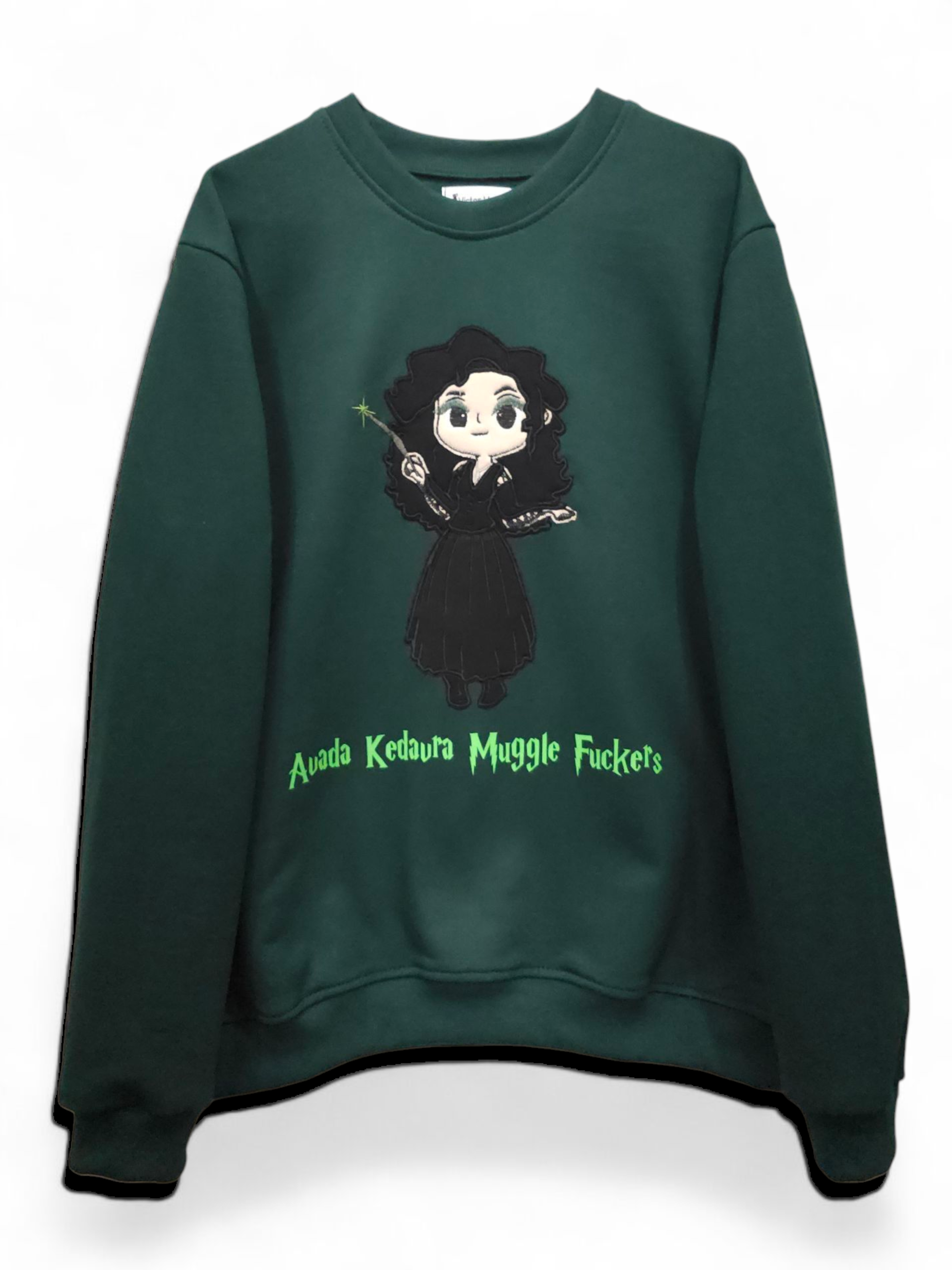 Nota: El diseño incluye la frase “Avada Kedavra Mogle Fuckers” en técnica de vinilo textil.
