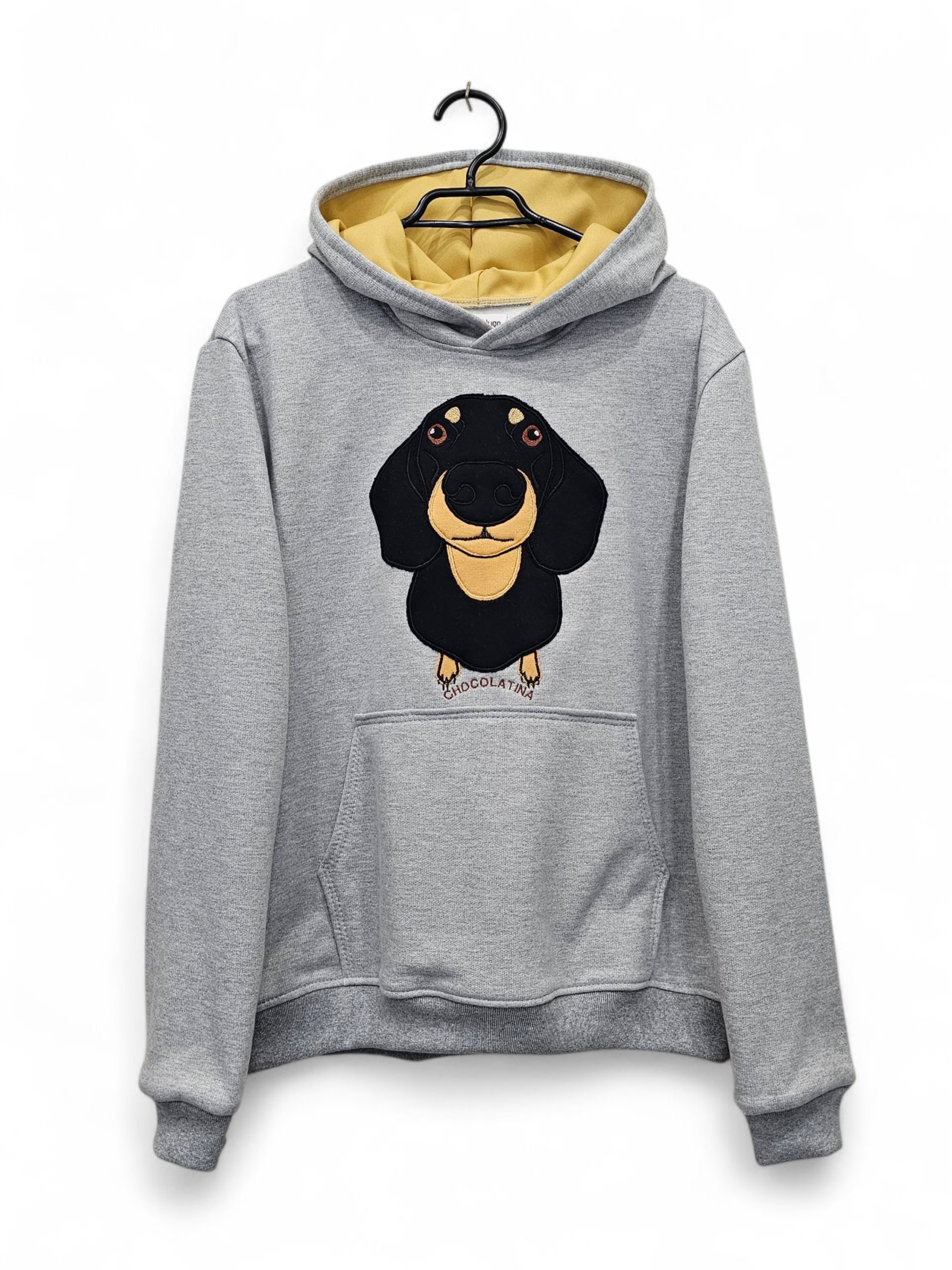 Materiales utilizados: Franelas de algodón en distintas tonalidades para dar vida a los detalles del perrito y forro de algodón en amarillo mostaza para la gorra.